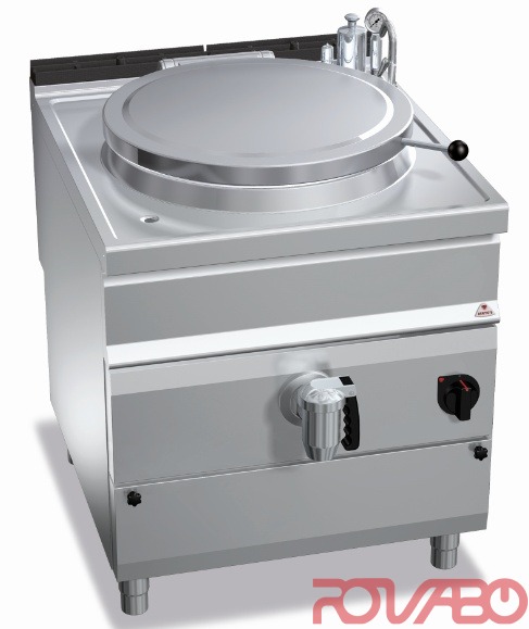 Worktop, front and side panels in AISI 304 stainless steel. AISI 304 stainless steel cooking tank (15/10 thick), AISI 316 stainless steel bottom (20/10 thick). Indirect steam heating. Hot and cold water taps on the worktop with an articulated spout for filling and washing the tank. 2” chromed brass draining tap of with heatless handle. Cooking temperature optimization by means of a valve for the steam flow adjustment.