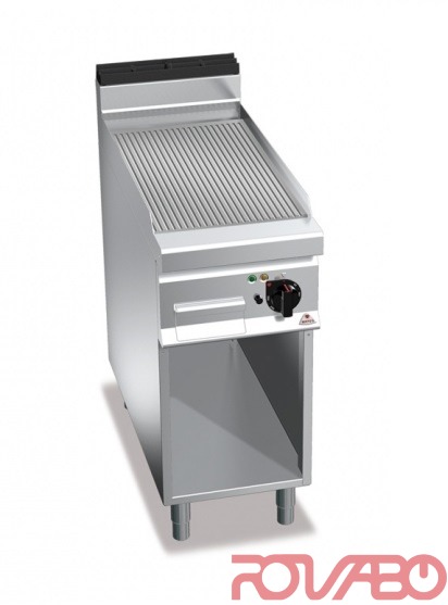 - Gas fry top with cabinet, grooved plate, 10 kW