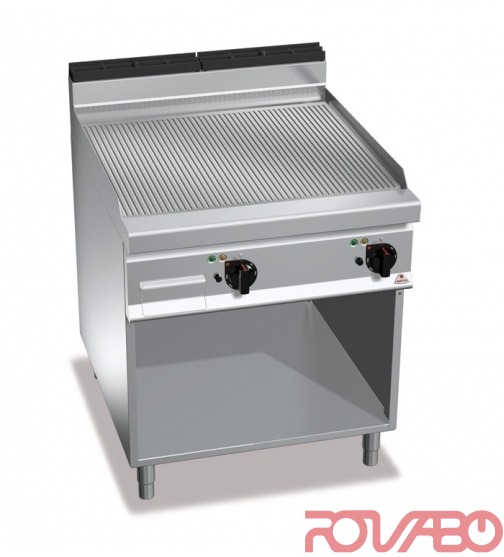 - Gas fry top with cabinet, grooved plate, 20 kW
