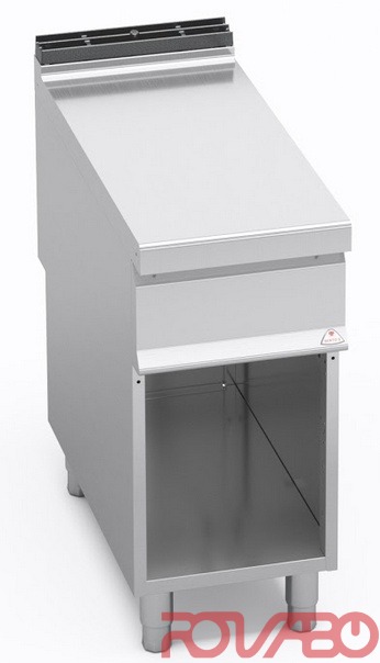 Worktop, front and side panels made of AISI 304 stainless steel. Inside made of stainless steel. Single and double models with cabinet, easy to use and clean. The single model is available with a practical removable drawer to keep utensils. Large compartment completely in steel.
