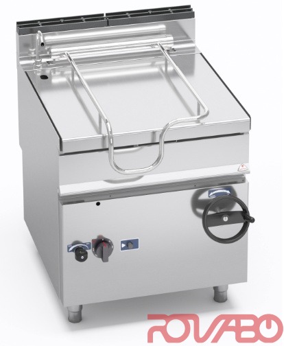 Internal and external frame completely made of stainless steel, external sides with Scotch Brite finishing. Cover fixed on a self-balanced hinge from AISI 304 stainless steel with a very thick handle from AISI 304 stainless steel. Cooking tank with AISI 304 stainless steel walls with 20/10 thickness, non-stick ceramic micro-sphere finishing and completely rounded angles. 17.196 kcal/h. Radiating steel tank bottom with 10 mm thickness; externally welded. Distributing tap with large capacity neck placed on the top. Handwheel to lift the tank with a folding handle. Even heating at the bottom with stainless steel multi-flame burners, with thermocouple safety valve and protected pilot flame. Piezoelectric ignition with rubber protection. Control with a large precision thermostatic valve with temperature regulation from 100 to 300°C.