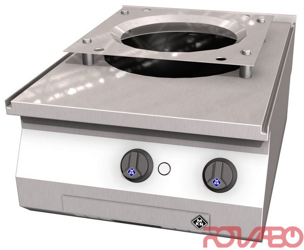Seamless and solid ceramic hob Ø350 mm, easy to clean, 6 mm thick. Wok hob 5 kW and wok pan recognition. Rapid heat transfer, high efficiency. Infinitely variable heating power for each heating zone using a position switch – one control lamp for each heating zone individually aligned for keeping food warm, simmering, frying and heating up fast. Mains connection with CEE appliance plug. Main switch, induction generator module Ø270 mm with control element, mains connection cable with 5-channel CEE plug 16 A, IPX4.