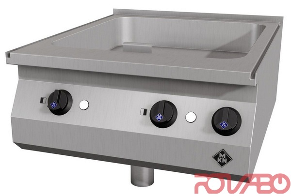 Multifunctional unit for frying, cooking and stewing. Attention: without the recess typical for CounterSL! Completely of chrome nickel steel 1.4404 (AISI 316), frying surface 500x540 mm 100 mm deep, floor drain. Supra contact heating elements for optimal heat distribution and short heating up times. Greater heating capacity ensures even heat distribution and minimal temperature fluctuation when loading with cold food. A long service life is ensured by low heating element temperature and effective heat insulation. Appliance with two separate heating zones with thermostatic temperature regulation. A safety temperature limiter for reliable overheating protection. Mains connection with CEE appliance plug. Main switch, thermostat, control lamp, safety temperature thermostat, SUPRA contact heating elements, mains connection cable with 5-channel CEE plug 16 A, IPX4. Accessories: 1 plug.