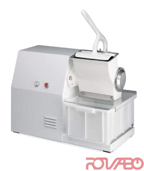 Сверхпрочная, надежная профессиональная терка. Быстрое производство натертого пармезана, твердого сыра, хлеба, миндаля, шоколада в больших объемах. Большой загрузочный бункер с механизмом толкания. Перфорированный вал из нержавеющей стали. Без решетки на выходе. Большой бункер приема. Двигатель с электромеханическим тормозом. Низковольтная (24 В) цепь управления обеспечивает режимы "Вперед" - "Стоп". Кожух и бункер приема оснащен датчиком защиты. Производительность 200 кг/ч.