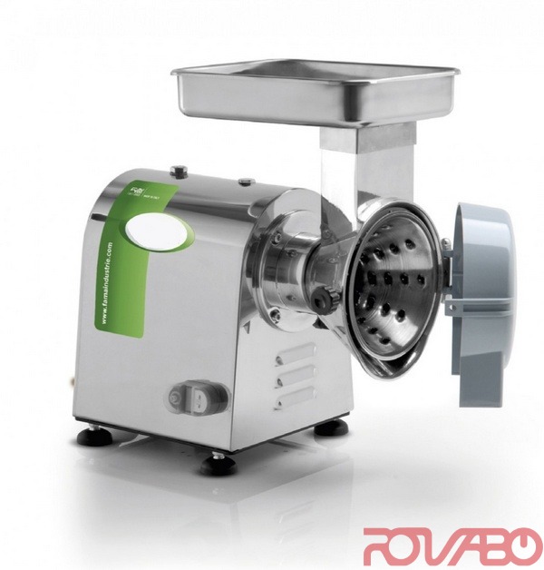 Профессиональное оборудование. Укреплённая конструкция з нержавеющей стали AISI 304. Редуктор зубчатый в масляной ванне. Мощный асинхронный двигатель с термозащитой. Бункер подачи, поддон и режущие элементы (конусы) из нержавеющей стали, толкатель из ABS-пластика, разгрузочный лоток из ABS-пластика с предохранительным микровыключателем, режущие элементы (конусы) разных размеров. Производительность - 50 кг/ч. Скорость - 1400 об/мин. Панель управления на 24 В обеспечивает эксплуатационную безопасность и максимальную безопасность оператора.