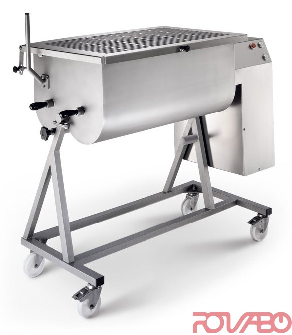Фаршемешалка с двумя лопастями (MB). Быстро перемешивает мясо, специи и другие ингредиенты для получения однородной смеси для колбас, гамбургеров, мясного рулета и пр. Надёжные, просты в использовании, легкоочищаемые. Для мясоперерабатывающих, колбасных заводов, супермаркетов, гипермаркетов и пр. Монтируются на 4 колёсиках - 2 направляющих с тормозом. Корпус, бункер, лопасти и крышка из нержавеющей стали. Опрокидываемый бункер для выгрузки готового фарша. Легкосъёмные лопасти упрощают очистку бункера. 2 положения крышки с микровыключателем. Двигатель непрерывного действия с вентиляцией. Низковольтное (24 В) предохранительное устройство с выключателем нулевого напряжения. Режимы «Пуск»-«Стоп»-«Реверс». Электрические элементы в корпусе (класс защиты IP 56).