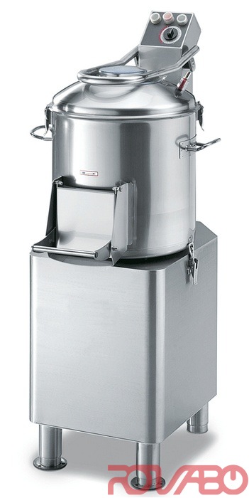 Изготовлена из нержавеющей стали AISI 304. Самонатяжной ремённый привод типа Poli-V. Высокопроизводительный вентилируемый двигатель для непрерывной эксплуатации. Абразивный диск из нержавеющей стали. Легкозаменяемая абразивная поверхность. Запатентованная съёмная (без инструментов) ёмкость и абразивное днище - можно мыть в посудомоечной машине. Автоматическая система разгрузки. Быстрозапорное разгрузочное отверстие из нержавеющей стали с герметичным закрытием. Регулируемые ножки из нержавеющей стали, прикрепляемые к полу. Простое обслуживание и доступ к компонентам. CE-модель с микровыключателем на крышке и на разгрузочном отверстии. Производительность - 340 кг/ч. Скорость - 275 об/мин. По запросу: отверстие большей длины под целлофановоые пакеты, быструю подачу воды, рама и сетчатый фильтр из нержавеющей стали.