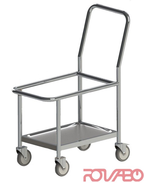 Изготовлены из нержавеющей стальной трубы D25 мм. Полка тележек с выдавкой, выполнена из листа нержавеющей стали. Тележки со сварной рамой. 4 профессиональных колёсика D125 мм, 2 из которых с тормозом.