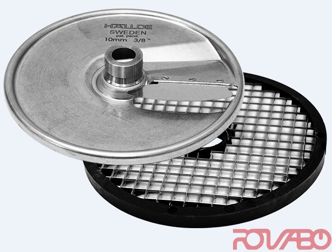 Комплект включает в себя диск для нарезки ломтиками и решётку для нарезки кубиками, комбинируемые для нарезки кубиками твёрдых и мягких овощей, фруктов и т.п. Применим в следующих аппаратах: CC-34, RG-50 (комплекты для нарезки кубиками от RG-100 применимы к CC-34 и RG-50), а также RG-100.