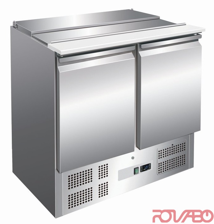 Салат-бар из хромоникелевой стали с 3-сторонней изоляцией испарителя, электронным управлением с цифровым температурным табло, регулировка температуры посредством термостата с электронным управлением. Разделочная доска из полиэтилена, основание выполнено с конусообразным углублением, сливом конденсата по центру. Для оптимальной циркуляции воздуха в основании за каждой дверью предусмотрена дополнительная решётка. Переключатель "вкл"/"выкл" с подсветкой. Жировой фильтр расположен за запираемой панелью аппарата (простое извлечение и очистка). Расчитано на 2x GN 1/4 и 4x GN 1/3 и 4x GN 1/6, ёмкости глубиной 150 мм. Максимум на 5 решёток, включая 5 пар неопрокидываемых направляющих (принадлежности) на дверцу отсека. Изоляция стенок - 45 мм, следовательно - сниженное энергопотребление. Дверной упор слева/ справа. Дверные уплотнители просты в обслуживании, инструменты не требуются. Охлаждение с рециркуляцией. Автоматическая система оттаивания. Испарение конденсата. Хладагент R600a (изобутан)/ потенциал глобального потепления GWP3, 70 г. Ёмкости GN в комплект поставки не входят. Принадлежности: 5 делителей, 1 белая рильсановая решётка GN 1/1 на дверцу и 2 пары неопрокидываемых направляющих, разделочная доска из полиэтилена.