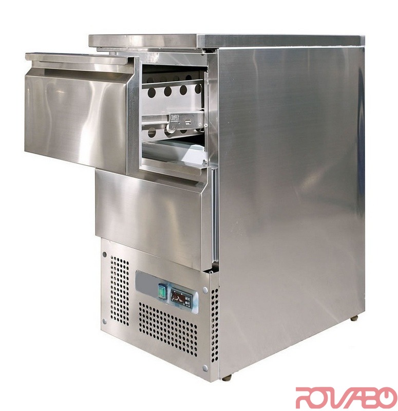 Внутри и снаружи выполнен из хромоникелевой стали. Электронная регулировка температуры, дисплей отображающий температуру. Фильтр для сбора жира, съемный для очистки. Максимальная вместимость полок 5 штук. Легко заменяемые дверные прокладки. Камера с закругленными краями для легкой очистки. Рабочая поверхность с закругленными углами, не съемная. В комплекте: 1 белая полка-решетка GN1/1 и пара направляющих.
