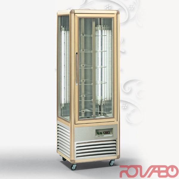Вертикальная витрина для шоколада, кондитерских изделий и мороженого. Система с автоматическим оттаиванием. Охлаждение: вентиляция. Цвета по выбору/ под заказ - RAL и древесные. Отн. влажность: 70/40%. Автоматическое оттаивание горячим газом. Хладагент: R404a. Замок: по запросу. Освещение: светодиодное (серийное оснащение). Климатический класс: 4. Стандартное оснащение: 6 шт. Ø430 мм.