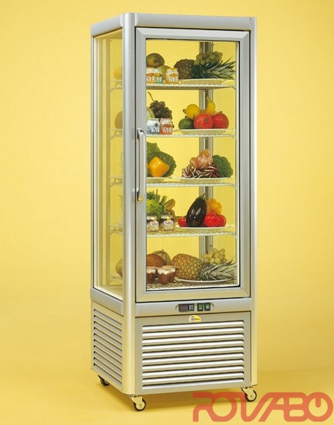 5 полок размерами 435x505 мм. Влажность: 75%. Автоматическая разморозка с термостатической паузой, автоматическое испарение. Хладагент R290. Замок по запросу. Освещение светодиодное. Охлаждение вентилятором. Стандартные цвета: серебро, лакированная бронза, экстра: ral.