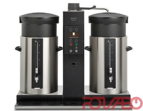 Кофеварка серии ComBi-Line 2x5 с 2 съёмными ёмкостями для заваривания кофе в больших количествах за короткий период времени. В аппарате предусмотрен ёмкостный сенсорный пользовательский интерфейс, стационарный подвод воды, предохранитель поворотной ручки, датчик ёмкости, плавный пуск, таймер, сигнал готовности кофе, дозатор кофе, общий и суточный счётчик. Ёмкости выполнены в нержавеющей стали 18/9 и оснащены (лёгким) синтетическим фильтром, каплесборником с ситом, кофемолкой, весами и извлекателем кофейной гущи с воронкой, дополнительным указателем уровня со щёточкой для его очистки и корзинчатыми фильтрами для первой заварки. Производительность, кофе в час - 30 л. Высокий излив, 185 мм.