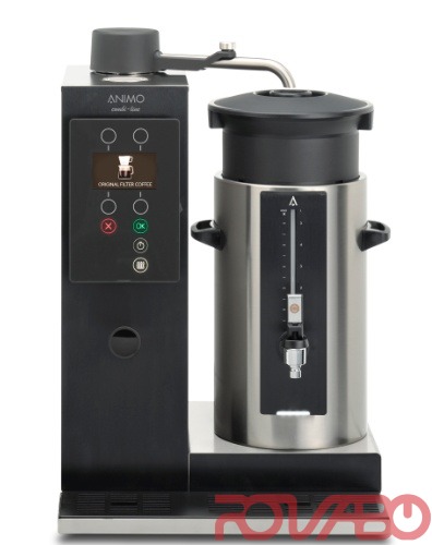 Кофеварка серии ComBi-Line 1x5 с 1 съёмной ёмкостью для заваривания кофе в больших количествах за короткий период времени. В аппарате предусмотрен ёмкостный сенсорный пользовательский интерфейс, стационарный подвод воды, предохранитель поворотной ручки, датчик ёмкости, плавный пуск, таймер, сигнал готовности кофе, дозатор кофе, общий и суточный счётчик. Ёмкости выполнены в нержавеющей стали 18/9 и оснащены (лёгким) синтетическим фильтром, каплесборником с ситом, кофемолкой, весами и извлекателем кофейной гущи с воронкой, дополнительным указателем уровня со щёточкой для его очистки и корзинчатыми фильтрами для первой заварки. Производительность, кофе в час - 30 л. Высокий излив, 185 мм.