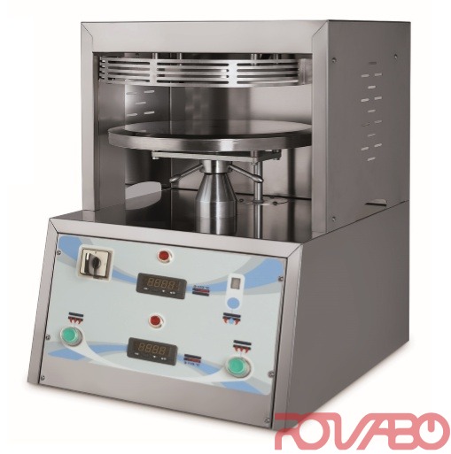 Идеальное оборудование для формовки заготовок пиццы диаметром 33 см. Тарелки (33 см) хромированные. Независимый термоконтроль тарелок. Система электронного управления временем прессования. Быстрая регулировка толщины теста весом 100-270 г.