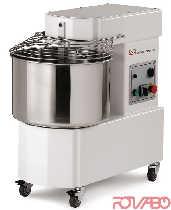 Стальная чаша, спираль со стержнем изготовлены из прочной нержавеющей стали. Защитная решётка из нержавеющей стали. В системе с цепным приводом задействован редукторный двигатель. Модификации с однофазным, трёхфазным 2-скоростным двигателем (за исключением 5 и 8 кг). Замес/ мука - 25/ 17 кг. Чаша - 400x260 мм. Стандартный таймер на 12-60 кг. Модели 12-44 поставляются на колёсиках с тормозом. Окраска исключительно нетоксичным порошком пригодным для контакта с продуктами питания. Электрическая установка и защитные устройства соответствуют европейским нормам.