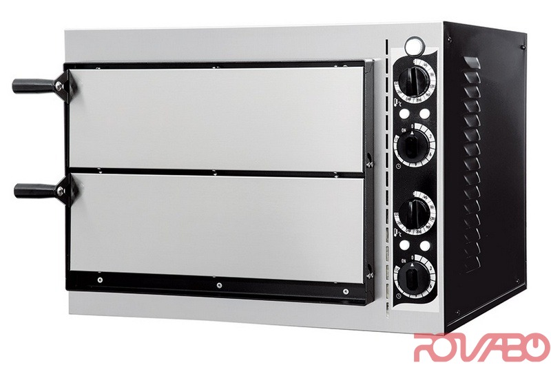 Компактная печь на две камеры с жарочной поверхностью из огнеупорного камня, изоляцией минеральной ватой, армированными тэнами. Малая, надёжная, мощная, подходит для баров, фуд-кортов, где предлагаются свои фирменные блюда на закуску или как вкусный перекус. Простая эксплуатация, оптимизированное энергопотребление. Возможна модифицикация с 4 термостатами для дозированного распределения тепла под соответствующее блюдо. По запросу: с трансформатором на 12 В и ламповым патроном.