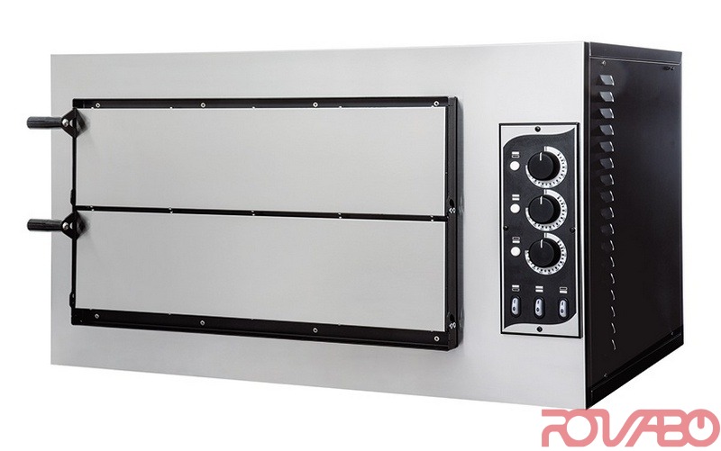 Компактная печь на две камеры с жарочной поверхностью из огнеупорного камня, изоляцией минеральной ватой, армированными тэнами. Малая, надёжная, мощная, подходит для баров, фуд-кортов, где предлагаются свои фирменные блюда на закуску или как вкусный перекус. Простая эксплуатация, оптимизированное энергопотребление. 3 термостата. В поставку может входить 2 противня 40x60 см. По запросу: с трансформатором на 12 В и ламповым патроном.
