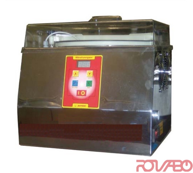 Темперирующая машина специально оптимизирована для автоматизации плавления, охлаждения и поддержания в разогретом состоянии шоколада, суррогатов и глазурей с температурой плавления, находящейся в диапазоне температур от +20 до +60 °C. Основное отличие от профессиональных температоров заключается в том, что для охлаждения используется воздух вместо воды. Точность температурных режимов обеспечивается цифровым термостатом, измеряющим температуру непосредственно продукта, находящегося в жидкой фазе с точностью до 0,5 °C. Есть возможность задать параметры температуры для любой из стадий, а также изменять временные интервалы между стадиями.