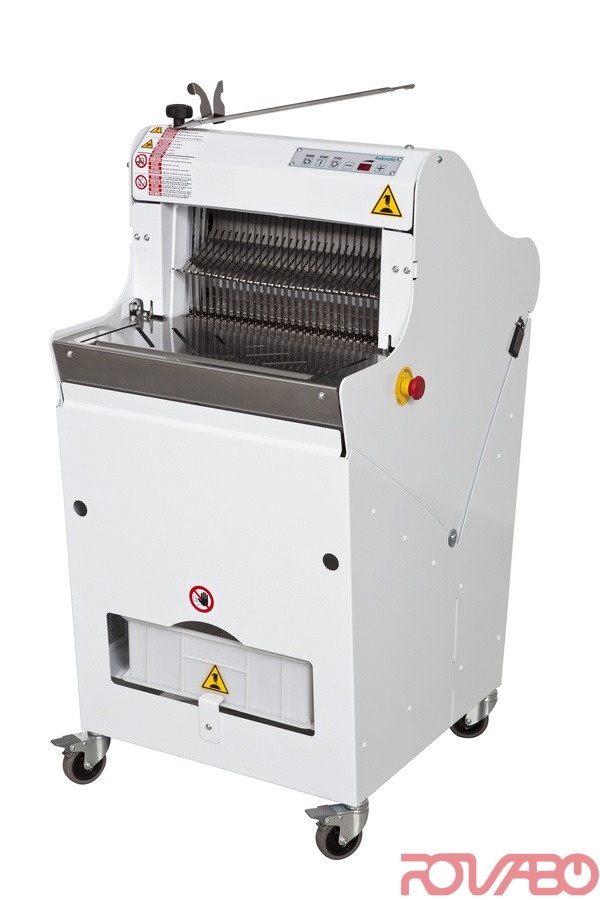 Автоматическая хлеборезка общего назначения для нарезки хлеба небольших размеров или с корочкой средней запечённости. Корпус из нержавеющей стали с порошковой покраской, автоматический программируемый аппарат - 9 скоростей, сила нажима, режимы работы - одноходовой и непрерывный, защитная крышка с автоматическим закрытием, открытием и фотоэлементом, высота нарезки - 60-180 мм, ящик для крошек, шаг ножа - 7-21 мм (фиксированный). Подходит для предприятий малого и среднего бизнеса. Напольная модель на колёсиках с боковой загрузкой. Номинальная ширина нарезки - 520 мм. Макс. размеры буханки - 500 x 230 x 180h мм.