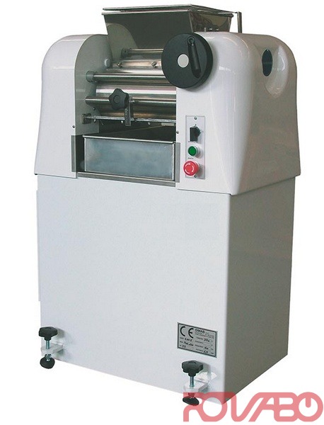 Основание из листовой стали, цилиндры из порфира. Плечи из чугуна. Идеальная машина для кондитерских. Машина измельчает: арахис, миндаль, лесные орехи, кешью, мускатный орех также подходит для переработки шоколада, перца, сахара. Современная система крепления скребковых лезвий делает машину надежнее, а также более быстрой и легкой в очистке. Цилиндры с основой из порфира могут быть раздвинуты при помощи регулирующего колесика, оставаясь при этом параллельными. Задний цилиндр вращается вокруг своей оси для лучшего измельчения. Модель оснащена функцией предотвращения. Приводной механизм находится в масляной ванне. 1 скорость.
