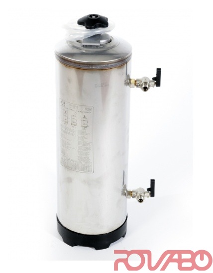 Изготовлен из нержавеющей стали AISI 304. В комплект входит ионообменная смола и медно-никелевые фитинги, кран с наружной резьбой 3/8" - внутренняя резьба 3/8" под заказ.