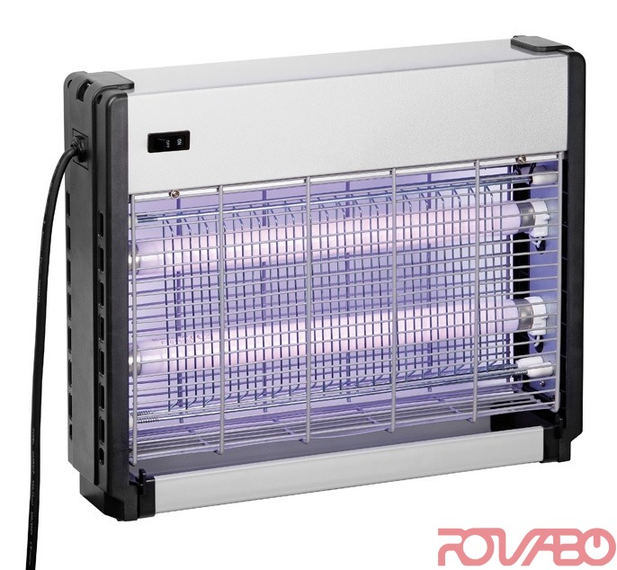 Пластиковый корпус. Для настенной или потолочной установки. Насекомые уничтожаются без химических препаратов c помощью электрического разряда, после чего падают в легко снимаемый контейнер. Радиус действия - 10 м. 2 лампы по 10 Вт. Напряжение решетки: 2500 В. В комплект входит цепочка.