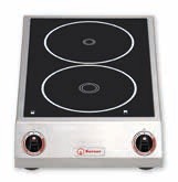 Стеклокерамическая плита размерами 290x475x4 мм. 2 круглые конфорки по Ø210 мм. Регулятор мощности, застеклённый цифровой индикатор. С вилкой. Встроенное табло контроля качества (при расположении сковороды на плите и установку регулятора на максимальной мощности (уровень 9), электронной системой выполняется оценка качества сковороды с выводом на табло). Цифровое табло: под каждую конфорку, под стеклокерамикой, для вывода уровня мощности (от 1 до 9) каждой конфорки. Технология "1+1 Powerstar": 2 конфорки по 1,8 кВт или 1x3,5 кВт впереди. По запросу: функция подогрева (из расчёта на конфорку).