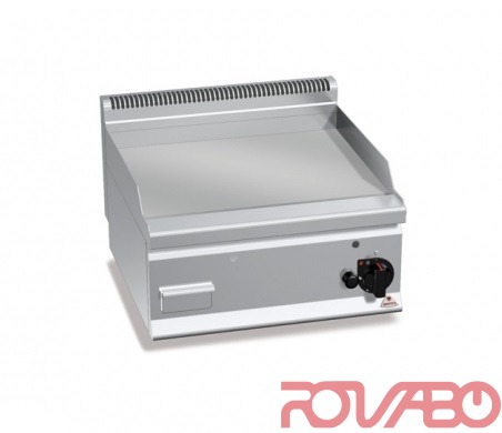 Рабочая поверхность изготовлена из нержавеющей стали AISI 304. Трубчатые горелки с самостабилизирующимся пламенем и большой удельной поверхностью для обеспечения более равномерного распределения тепла. Регулировка мощности ручкой непрерывного действия. Запальная горелка и предохранительный клапан, оснащённый термопарой. Пьезоэлектрический поджиг с защитой из силикона. Температура выше 300°С. Поверхность гладкая из матовой стали, с брызгозащитным бортиком. Незначительно наклонённые края с крупным отверстием для слива со сливной линией и жиросборником.