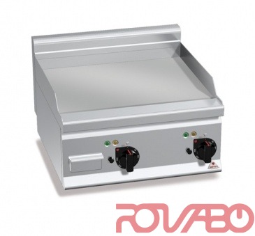 Рабочая поверхность из нержавеющей стали AISI304, нагревательные элементы из стали сплава инколой, расположенные под рабочей поверхностью. Управление с помощью термостата и предохранительного термостата с режимом ручного перезапуска. Регулировка температуры - от 50 до 270°C. Индикатор питания и температуры. Немного закруглённые края, крупное отверстие для слива, линия слива с жиросборником. Гладкая поверхность из матовой стали с брызговиком. 2 независимые зоны нагрева для обеспечения независимого и идеального терморегулирования.