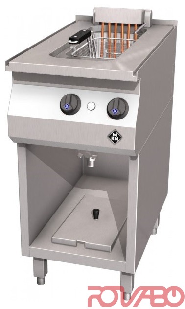 Сварная бесшовная жарочная ванна размерами 180x400x235 мм, штампованная сталь, с крупным сливным жёлобом. Тэны из хромоникелевой стали. Простота очистки обеспечивается полным извлечением нагревательных элементов из ванны фритюрницы, с крепёжным кронштейном и автоматическим выключением, для упрощения очистки. Трубчатые нагревательные элементы малой поверхностной нагрузки и длительного срока эксплуатации, подходят для использования в масляной среде. Глубокая охлаждаемая зона ванны. Термостатическое регулирование температуры. Предохранительный термостат для надёжности защиты от перегрева. Главный выключатель, концевой выключатель, термостат, предохранительный термостат, контрольный индикатор, тэны, пускатель, подключение к силовой сети, класс защиты IPX 4. С повышенной тепловой мощностью. Безопасный слив масла из нижней части по подвижному клапану. Имеется интерфейс для подключения к системе оптимизации электропитания c беспотенциальным контактом. Принадлежности: 1 крышка, 1 жиросборник, 1 корзина размерами 313x160 мм глубиной 115 мм. Дополнительные принадлежности: 1 жиросборник на 15 л, ножки к аппарату h200 мм, регулируемые по высоте на +/– 15 мм (4 шт.).