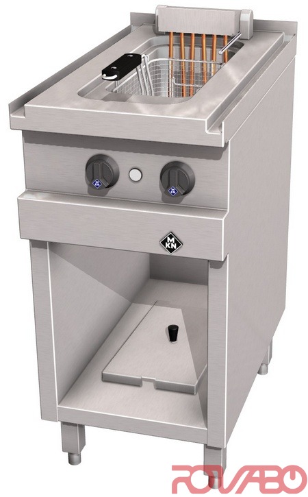 Сварная бесшовная жарочная ванна размерами 180x400x235 мм, штампованная сталь, с крупным сливным жёлобом. Тэны из хромоникелевой стали. Простота очистки обеспечивается полным извлечением нагревательных элементов из ванны фритюрницы, с крепёжным кронштейном и автоматическим выключением, для упрощения очистки. Трубчатые нагревательные элементы малой поверхностной нагрузки (3,7 Вт/см²) и длительного срока эксплуатации, подходят для использования в масляной среде. Глубокая охлаждаемая зона ванны. Термостатическое или электронное регулирование температуры. Предохранительный термостат для надёжности защиты от перегрева. Главный выключатель, термостат, предохранительный термостат, контрольный индикатор, тэны, пускатель, концевой выключатель, подключение к силовой сети, класс защиты IPX 5. Возможны модификации с повышенной тепловой мощностью, с подъёмником корзин и таймером. Безопасный слив масла из нижней части по подвижному клапану. Возможно подключение к системе оптимизации электропитания c беспотенциальным контактом. По запросу: функция топления масла. Комплектующие: 1 крышка, 1 жиросборник, 1 корзина размером 160х313 мм.
