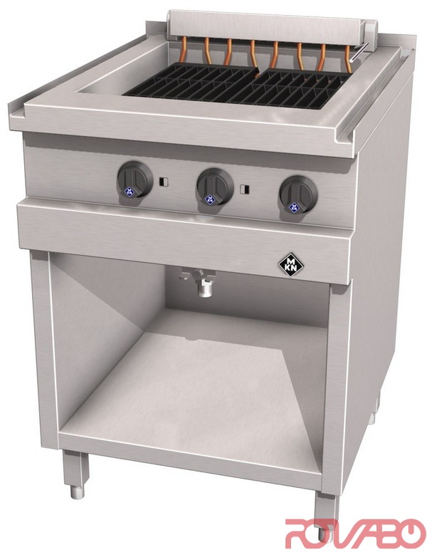 Рабочая поверхность: 380x470 мм. 2 зоны нагрева раздельного управления. "Чистая" жарка обеспечивается за счёт инфракрасных тэнов. Простота очистки обеспечивается их полным извлечением из ванны гриля. Жиросборник можно наполнять водой, в целях упрощения очистки, так и безопасного сливного отверстия ¾" в основании. Главный выключатель, регулятор мощности, тэны/ нагревательные элементы, 1 пускатель на каждую зону нагрева, подключение к сети, класс защиты IPX 5. По запросу оснащается интерфейсом для подключения к системе оптимизации электропитания по стандарту DIN 18875, с беспотенциальным контактом. В комплекте: 2 чугунные решётки.