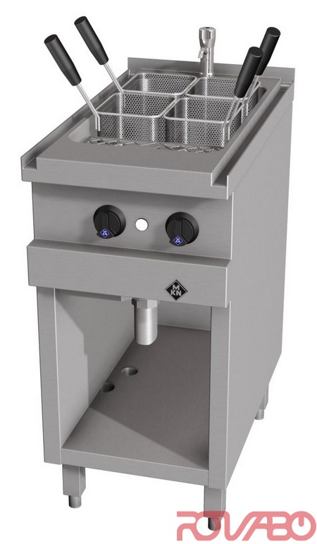 Вваренная ванна размерами 305x510 глубиной 210 мм из коррозиестойкой хромоникелевой стали (1.4404) (AISI 316). Система нагрева Supra обеспечивает быстрый нагрев вместе с продлением срока эксплуатации. Регулятор мощности и термостатический регулятор температуры. Благодаря косвенному нагреву очень легко чистится. Сливной шаровой клапан R 1½". Регулятор мощности, термостат, контрольный индикатор, предохранительный термостат, контактные нагревательные элементы SUPRA, реле, подключение к сети, класс защиты IPX 5. Предусмотрен интерфейс для подключения к системе оптимизации электропитания с беспотенциальным контактом. Принадлежности: 1 перфорированная полка, 1 трубка с ёмкостью для сбора крахмала с перфорированным кожухом, 4 корзины из хромоникелевой стали - 2 слева и 2 справа, 1 водопроводный кран R½" за ванной. Принадлежности по запросу: дополнительный комплект на 6 корзин для пасты, включающий в себя пробку с отверстием и 2 корзины для пасты из хромоникелевой стали; ножки к аппарату высотой 200 мм, регулируемые по высоте на +/–15 мм (4 шт.).