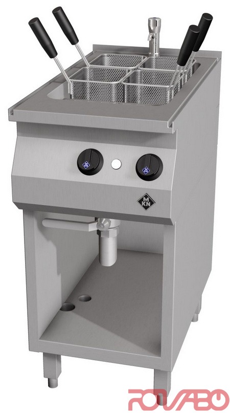 Вваренная ванна размерами 305x510 глубиной 210 мм из коррозиестойкой хромоникелевой стали (1.4404) (AISI 316). Система нагрева Supra обеспечивает быстрый нагрев вместе с продлением срока эксплуатации тэнов. Регулировка переменной мощности и термостатическое регулирование температуры. Благодаря косвенному нагреву очень легко чистится. Сливной шаровой клапан R 1½", поворотный кран подвода воды. Регулятор мощности, термостат, контрольный индикатор, предохранительный термостат, контактные нагревательные элементы SUPRA, реле, подключение к силовой сети, класс защиты IPX 4. Предусмотрен интерфейс для подключения к системе оптимизации электропитания с беспотенциальным контактом. Принадлежности: 1 перфорированная полка, 1 трубка с ёмкостью для сбора крахмала с перфорированным кожухом на 4 корзины из хромоникелевой стали - 2 слева и 2 справа, 1 кран подвода воды R½" сзади. Принадлежности по запросу: дополнительный комплект на 6 корзин для пасты, включающий в себя пробку с отверстием и 2 корзины для пасты из хромоникелевой стали; ножки к аппарату высотой 200 мм, регулируемые по высоте на +/–15 мм (4 шт.).