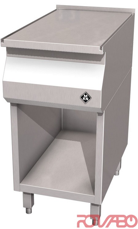 Корпус полностью из хромоникелевой стали (1.4301) / (AISI 304). П-образный соединительный канал, заполдлицо с верхней рабочей поверхностью; плотная посадка на основание - максимальная гигиена. Направленный слив жидкостей по выпускному каналу в верхней рабочей поверхности спереди. Дополнительные принадлежности/ по запросу: вставные ножки к аппарату h150 мм, регулируемые по высоте на +/– 15 мм (4 шт.).