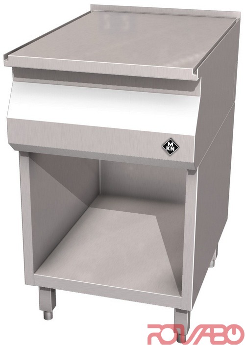 Корпус полностью из хромоникелевой стали (1.4301) / (AISI 304). П-образный соединительный канал, заполдлицо с верхней рабочей поверхностью; плотная посадка на основание - максимальная гигиена. Направленный слив жидкостей по выпускному каналу в верхней рабочей поверхности спереди. Дополнительные принадлежности/ по запросу: вставные ножки к аппарату h150 мм, регулируемые по высоте на +/– 15 мм (4 шт.).