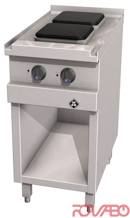 Печь, камера изнутри и дверца печи изготовлены из хромоникелевой стали. 2 конфорки 220х220 мм, по 2,6 кВт каждая. Конфорки с защитным устройством, автоматически снижающим уровень мощности примерно на 50 % в отсутствии эксплуатации. 7-позиционный переключатель для точного терморегулирования. IPX 5. Расстояние между конфорками - менее 35 мм для упрощения перемещения кухонного инвентаря. Эффективная теплоизоляция. На открытом шкафичке. Опция: возможно подключение к системе оптимизации электропитания с беспотенциальным контактом.