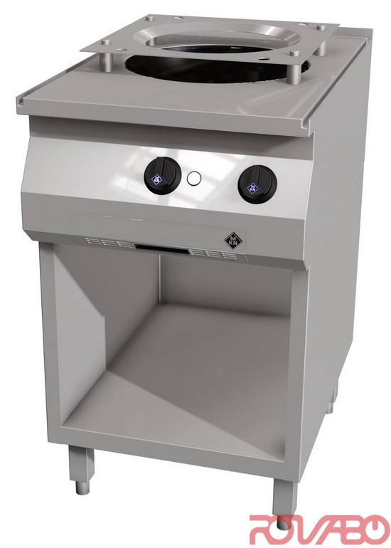 Сварная бесшовная рабочая поверхность плиты толщиной 6 мм - проста в очистке. Вок-панель на 5 кВт, идентификатор диаметра днища вок-посуды, керамическая варочная панель Ø350 мм. Высокая теплоотдача и эффективность. Плавная индивидуальная регулировка мощности позиционным переключателем с индивидуальным контрольным индикатором каждой зоны нагрева для поддержания пищи в горячем состоянии, медленного кипения, жарки и быстрого нагрева. Главный выключатель, модуль индукционного генератора ø270 мм с элементом управления, подключение к электросети, класс защиты IPX4. По запросу: оснащение интерфейсом для подключения к системе оптимизации электропитания с беспотенциальным контактом. Принадлежности по запросу: вок-сковорода из нержавеющей стали.