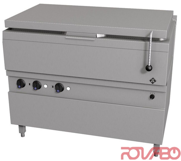 Чаша 1020x540 мм глубиной 200 мм. Механизм опрокидывания с электроприводом с ручным выключением. Главный выключатель, кнопка пуска двигателя, концевой выключатель, термостат, предохранительный термостат, контрольные индикаторы, контактные нагревательные элементы SUPRA, электродвигатель вращения шпинделя, реле, подключение к сети, класс защиты IPX5. Контактные нагревательные элементы SUPRA для оптимального теплораспределения и быстрого нагрева. Благодаря высокой нагревательной способности обеспечивается равномерное теплораспределение с минимальными температурными колебаниями в случае загрузки холодных продуктов. Термостатическое терморегулирование двух независимых зон нагрева. Опрокидываемая сковорода из специального многослойного материала гладкой шлифовки (MKN PowerBlock). Идеальное расположение сковороды предотвращает проливание, обеспечивая полный слив. Двухслойная шарнирная крышка. Имеется интерфейс для подключения к системе оптимизации электропитания согласно DIN 18875 с беспотенциальным контактом. 4 ножки высотой 150 мм, регулируемые по высоте на +/– 15 мм. Дополнительные принадлежности: выключатель ножной педали для механизма моторизованного опрокидывания, заводская сборка.