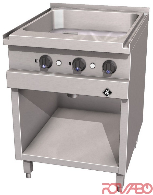 Универсальное устройство для жарки, варки и тушения. Изготовлено полностью из хромоникелевой стали 1.4404 (AISI 316), сварная бесшовная жарочная поверхность размерами 500x540 мм глубиной 100 мм гладкой шлифовки из специального многослойного материала MKN PowerBlock, максимальная гигиена. Контактные нагревательные элементы Supra обеспечивают большую нагревательную способность и равномерное распределение тепла за короткий промежуток времени с минимальными температурными колебаниями, в случае загрузки холодных продуктов. 2 независимые зоны нагрева с термостатическим регулированием. Главный выключатель, термостат, контрольный индикатор, предохранительный термостат, контактные нагревательные элементы SUPRA, подключение к сети, класс защиты IPX 5. Предусмотрен интерфейс для подключения к системе оптимизации электропитания с беспотенциальным контактом. Принадлежности: 1 пробка. Принадлежности по запросу: система выгрузки продуктов, включающая гастроймкость 1/1 GN и брызгозащитный элемент, без дверцы; вставные ножки аппарата h200 мм, выкручиваемые по высоте на +/– 15 мм (4 шт.).