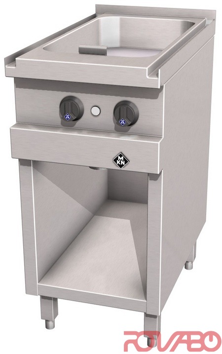 Универсальное устройство для жарки, варки и тушения. Изготовлено полностью из хромоникелевой стали 1.4404 (AISI 316), сварная бесшовная жарочная поверхность размерами 300x540 мм глубиной 100 мм гладкой шлифовки из специального многослойного материала MKN PowerBlock, максимальная гигиена. Контактные нагревательные элементы Supra обеспечивают большую нагревательную способность и равномерное распределение тепла за короткий промежуток времени с минимальными температурными колебаниями, в случае загрузки холодных продуктов. Одна зона нагрева с термостатическим регулированием. Главный выключатель, термостат, контрольный индикатор, предохранительный термостат, контактные нагревательные элементы SUPRA, подключение к сети, класс защиты IPX 5. Предусмотрен интерфейс для подключения к системе оптимизации электропитания с беспотенциальным контактом. Принадлежности: 1 пробка. Принадлежности по запросу: система выгрузки продуктов, включающая гастроймкость 1/1 GN и брызгозащитный элемент, без дверцы; вставные ножки аппарата h200 мм, выкручиваемые по высоте на  +/– 15 мм (4 шт.).