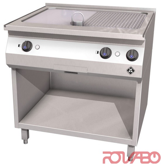 Изготовлено полностью из хромоникелевой стали 1.4404 (AISI 316), жарочная поверхность размерами 705x545 мм из полурифлёной хромоникелевой стали. Две независимые зоны нагрева с термостатическим регулированием. Контактные нагревательные элементы Supra обеспечивают большую нагревательную способность и оптимальное распределение тепла за короткий промежуток времени с минимальными температурными колебаниями, в случае загрузки холодных продуктов. Длительный срок службы гарантирован низкой температурой тэнов и эффективной термоизоляцией. Предохранительный ограничитель температуры для надёжности защиты от перегрева. Жарочные поверхности оснащаются жиросборником с брызгозащитным элементом. Главный выключатель, термостат, контрольный индикатор, предохранительный термостат, контактные нагревательные элементы SUPRA, подключение к силовой сети, класс защиты IPX4. Чувствительность к теплоизлучению - 3,5 кВт, скрытому - 4,3 кВт. Предусмотрен интерфейс для подключения к системе оптимизации электропитания с беспотенциальным контактом. Принадлежности по запросу: брызгозащитный бортик, пробка для слива жира, скребок для гладких и рифлёных поверхностей; вставные ножки к аппарату h200 мм, выкручиваемые по высоте на +/– 15 мм (4 шт.).