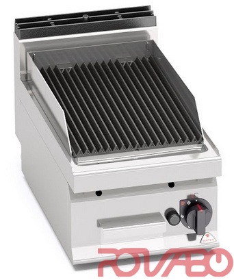 Рабочая поверхность и фронтальные панели из нержавеющей стали AISI304. 5 932 ккал/ч. Регулировка мощности посредством крана непрерывного действия. Запальная горелка и предохранительный клапан, оснащённый термопарой. Пьезоэлектрический поджиг с защитой из силикона. Жаровня из нержавеющей стали. Крупная жарочная поверхность с легкосъёмной чугунной решёткой. Особая конструкция позволяет готовить рыбу, мясо и овощи, не допуская сгорания жиров. Все детали демонтируются для выполнения регулярной очистки и обслуживания. Очень длинный герметичный стальной контейнер для сбора золы и жира. Лавовый камень в комплекте.