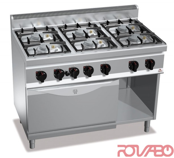Рабочая поверхность и фронтальные панели из нержавеющей стали AISI304. Горелки из чугуна; активируются посредством крана, герметичны, установлены на стальной поверхности глубокой штамповки. Электрическая статическая духовка из нержавеющей стали на 4 уровня направляющих под решётки/противни GN2/1. Контрольный индикатор и индикатор температуры. Гриль с функцией саламандра в верхней части и термостат, позволяющий выполнять точное терморегулирование от 50 до 270°C. Термопара с системой защиты. С запальной горелкой с латунной головкой - простая очистка, обслуживание. Штампованная дверца и контрдверца из нержавеющей стали AISI304. Термостойкие дверные ручки толщиной 20/10 (2 мм) из нержавеющей стали AISI 304. Регулируемые ножки. В комплекте: 1 решётка.