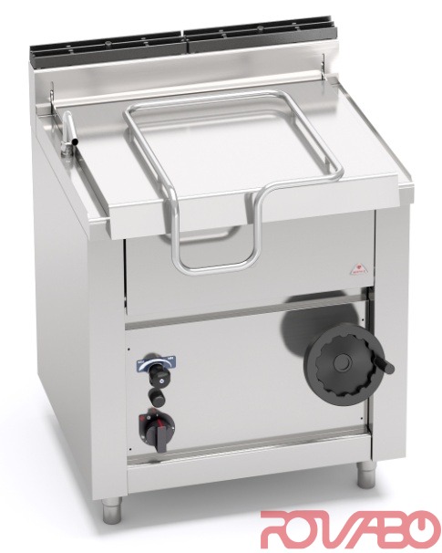 Крышка закреплена на самовыравнивающемся шарнире. 12 467 ккал/ч. Варочная ёмкость с дном и стенками из нержавеющей стали AISI304, ручным опрокидыванием до 80°, антипригарным керамическим покрытием с микросферами и закруглёнными углами. Стальное дно ёмкости толщиной 10 мм с наружной сваркой для лучшей теплопроводности. Однородный разогрев посредством нагревательных элементов, которые находятся в прямом контакте с дном. Пьезоэлектрический поджиг с силиконовой защитой и запальной горелкой. Идеальна для приготовления пищи с высоким уровнем влажности. Термостатический клапан для регулировки температуры в диапазоне от 100 до 300°C 7-позиционной ручкой. Термоэлектрическое предохранительное устройство. Регулируемые ножки.