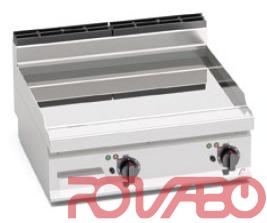 Рабочая поверхность и фронтальные панели из нержавеющей стали AISI 304. ТЭНы из сплава инколой расположены под жарочной поверхностью. Термостат, предохранительный термостат с ручным перезапуском. Индикатор питания и температуры. Очень толстая гладкая рабочая поверхность с брызгозащитным бортиком. Двухкомпонентная жарочная поверхность из стального листа для оптимизации однородной готовки с верхним покрытием из шлифованной нержавеющей стали AISI 316 для упрощения очистки и минимизации излучения для большего удобства оператора. Жарочная поверхность имеет небольшой уклон, крупное сливное отверстие с выводом в поддон. Подходит, в частности, для деликатной готовки. Регулируемые ножки. По запросу: 2 дверцы с ручкой толщиной 20/10 - для моделей со шкафчиком; 220 - 240В 3~; тефлоновая пробка.