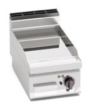 Рабочая поверхность и фронтальные панели из нержавеющей стали AISI 304. ТЭНы из сплава инколой расположены под жарочной поверхностью. Термостат, предохранительный термостат с ручным перезапуском. Индикатор питания и температуры. Очень толстая гладкая рабочая поверхность с брызгозащитным бортиком. Двухкомпонентная жарочная поверхность из стального листа для оптимизации однородной готовки с верхним покрытием из шлифованной нержавеющей стали AISI 316 для упрощения очистки и минимизации излучения для большего удобства оператора. Имеет небольшой уклон, крупное сливное отверстие с выводом в поддон. Подходит, в частности, для деликатного приготовления. Регулируемые ножки. По запросу: дверца с ручкой толщиной 20/10 - для моделей со шкафчиком; 220 - 240В 3~; тефлоновая пробка.