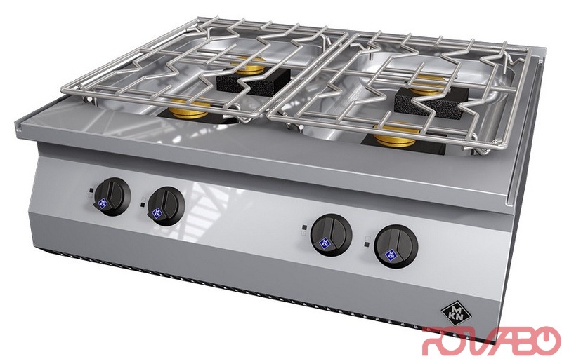 Экономичность и высокая эффективность подключённой нагрузки. За счёт глубины конфорки в 70 мм выкипающая еда не подгорает. 2 конфорки C на 3,5 кВт (сзади слева, спереди справа), 2 конфорки D на 5,6 кВт (сзади справа, спереди слева). Конфорка атмосферного типа, запальная горелка, термоэлектрическое предохранительное устройство, газовый кран. Газ: природный/жидкий (20; 25/ 30; 37; 50 мбар). Требуется газовое соединение DN 15 (½"). Принадлежности: 2 съёмные решётки из хромоникелевой стали (370x550 мм). Принадлежности по запросу: 1 вставка на 1 конфорку для приготовления на малом огне, 1 решётка из хромоникелевой стали на 1 конфорку (274x370 мм).